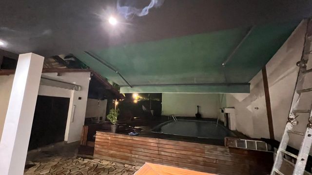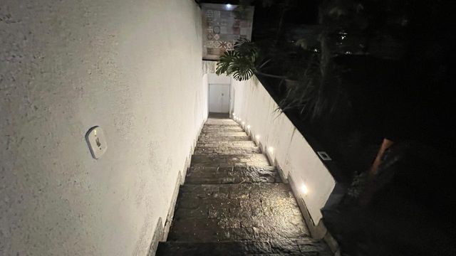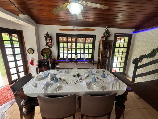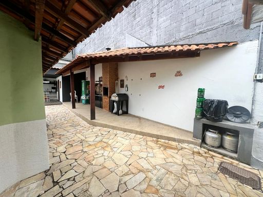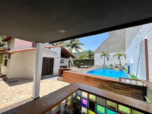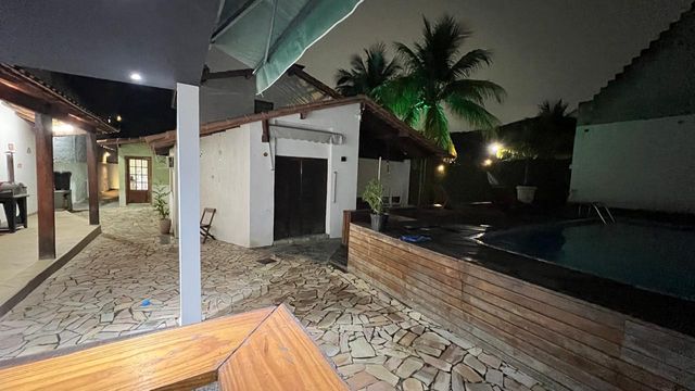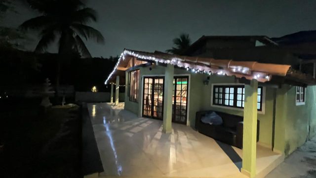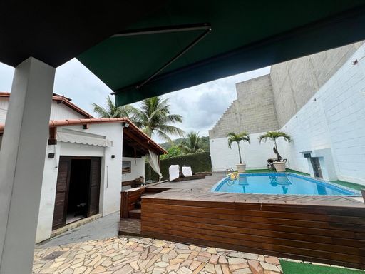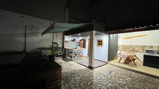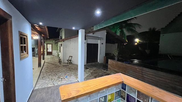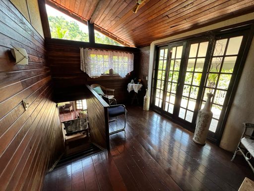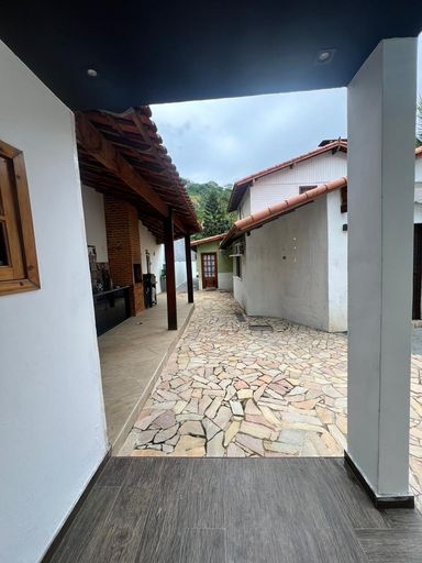 2º pavimento: Quintal e jardim, com árvores frutíferas como coqueiros, mangueiras e outras. Casa centro de terreno, com varanda de entrada com vista para às montanhas.